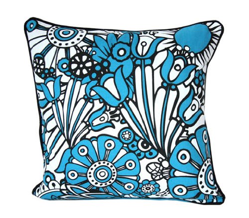Room Service Retro Mod Collection Mod Flowers Pillow, 18-inch x 18-inch, Black/White/Blue Review