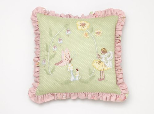 Fairyland Decorative Pillow by Whistle & Wink Complete your little girl's bedding set with this Fairyland Decorative Pillow from Whistle & Wink. Adorable fairies and flower dance upon a green polka dot background surrounded by sweet pink ruffles. This pillow includes a removable feather down insert and is made of 240 thread-count 100% cotton sateen. Whistle & Wink's exquisite collection of children's bedding, crib bedding and window products is the answer to your decorating needs. This luxurious collection offers functionality like no other; mixing special old with fun new keeps things simple, yet very well decorated. Each bedding product in the Whistle & Wink line is interchangeable, with an endless variety of unique combinations in original designs. Quality meets style with this line of children's bedding. Mothers, rest assured. Whistle & Wink product testing requires a 4 stage-testing regimen to assure quality and high safety standards.