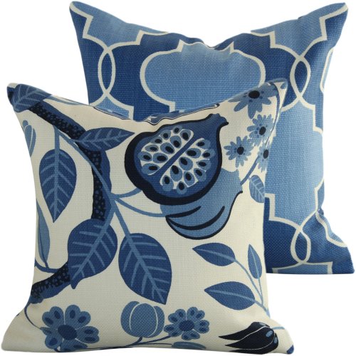 Blooming Sapphires Collection - P Kaufmann Designer 14" Square Boutique Throw Pillow Covers - Flowers, Petals, Leaves and Lattice - Blue, Navy and Ivory - 1 Cover Review