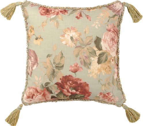 Green and Rose Floral 18 x 18 Chesapeake Pillow Feature